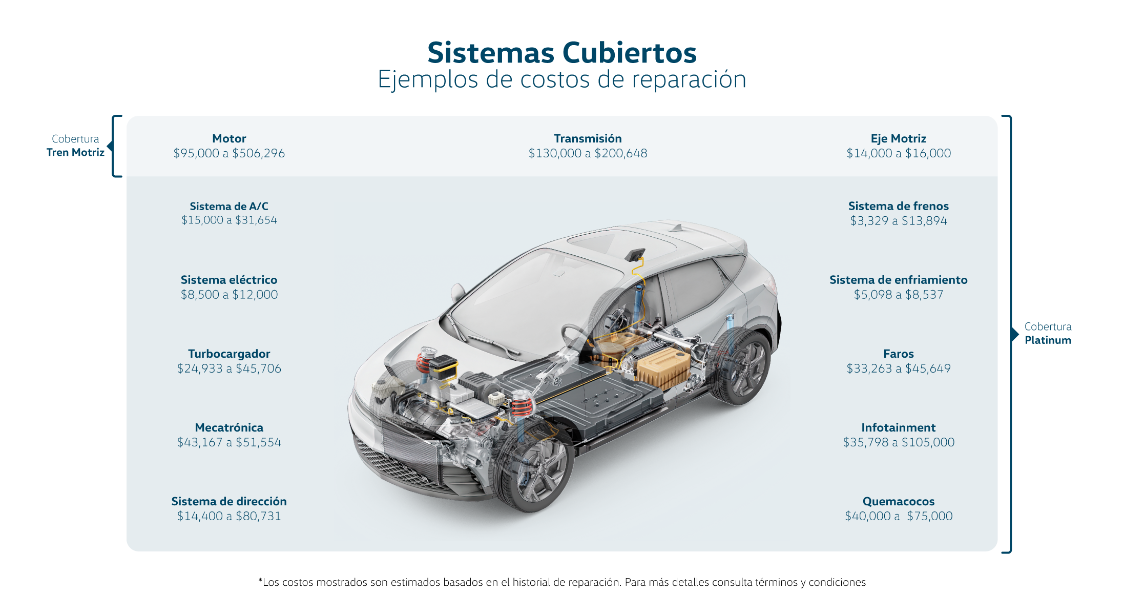 *Los costos mostrados estan basados en el historial de reparaciónes del programa para ejemplificar el importe pagado por una reparación cubierta.